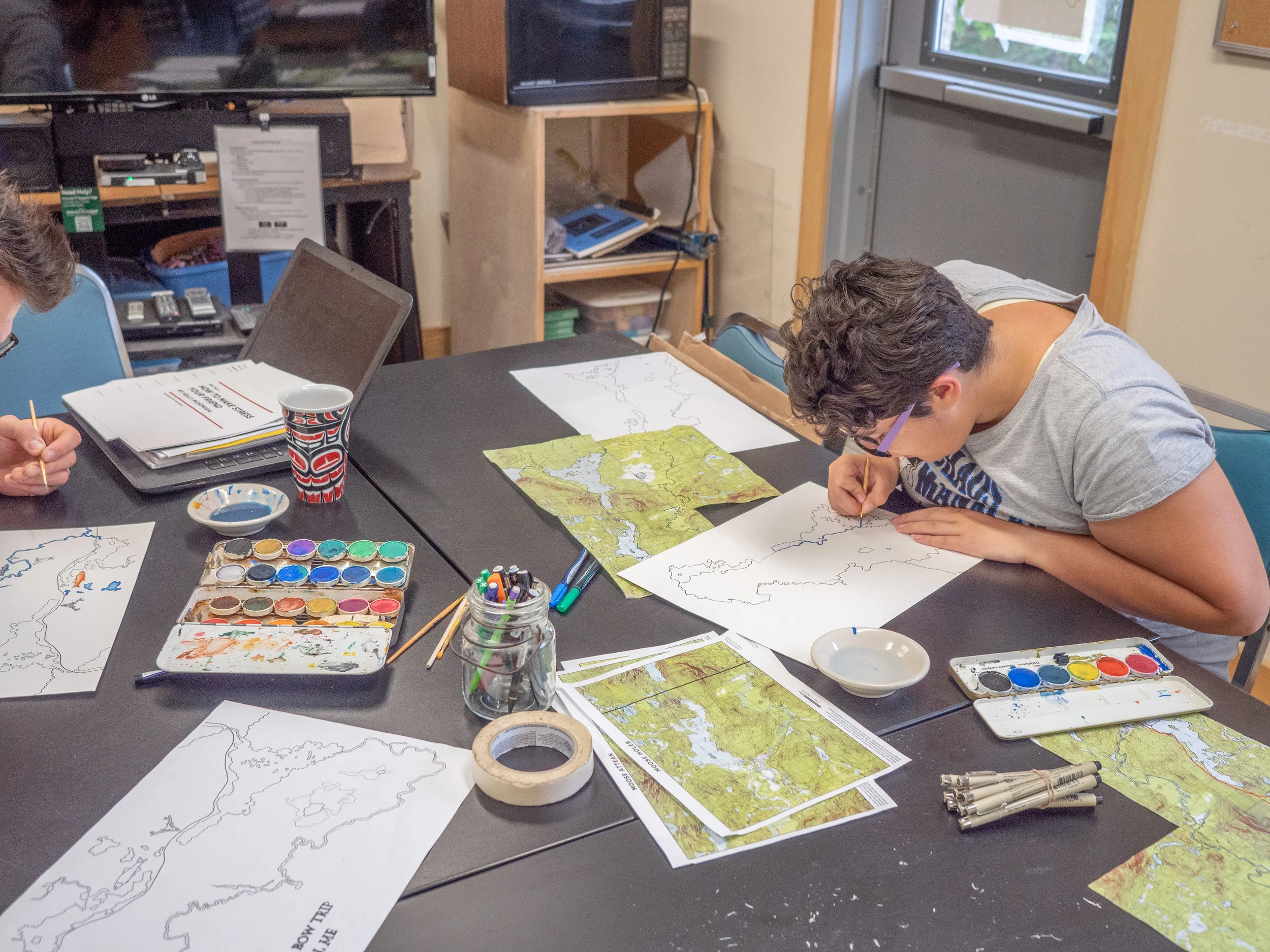 Cobscook students working on Story Maps about their recent canoe trip.