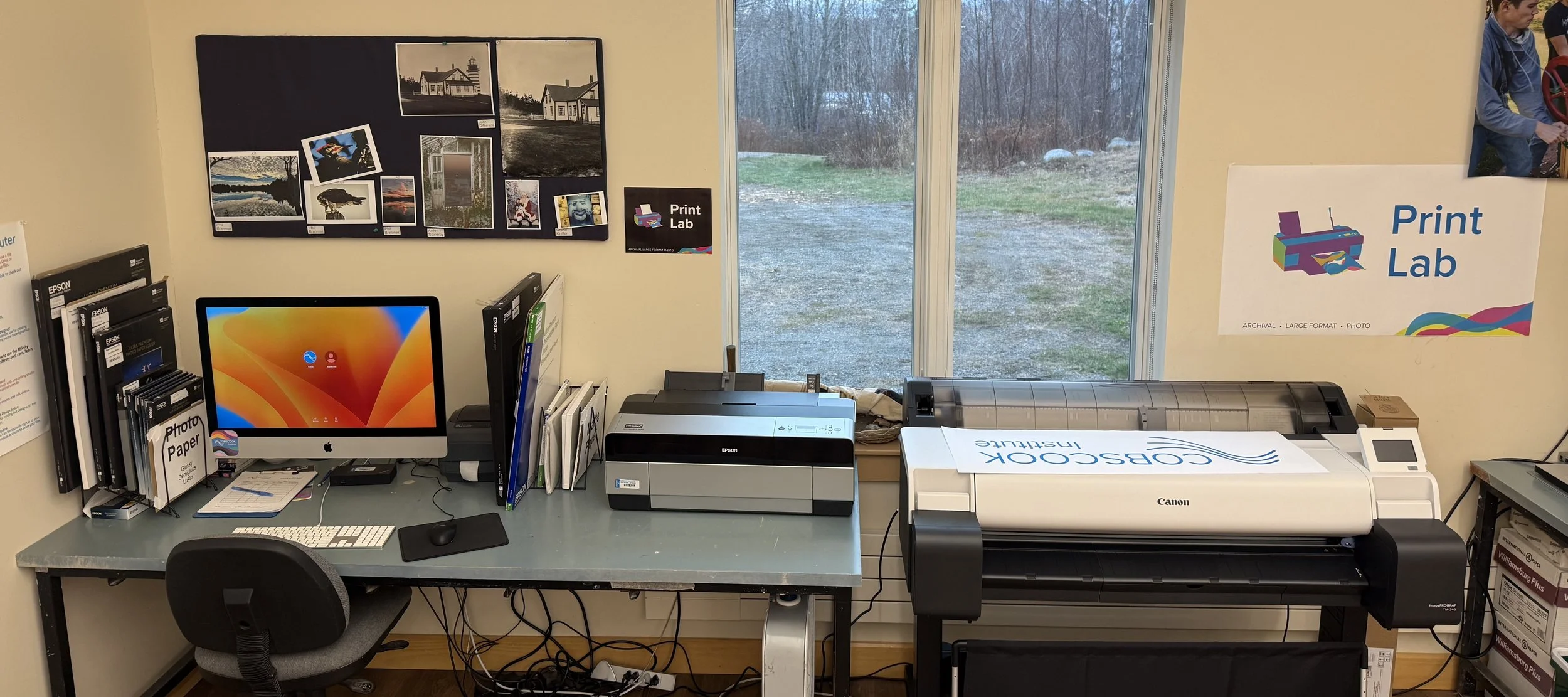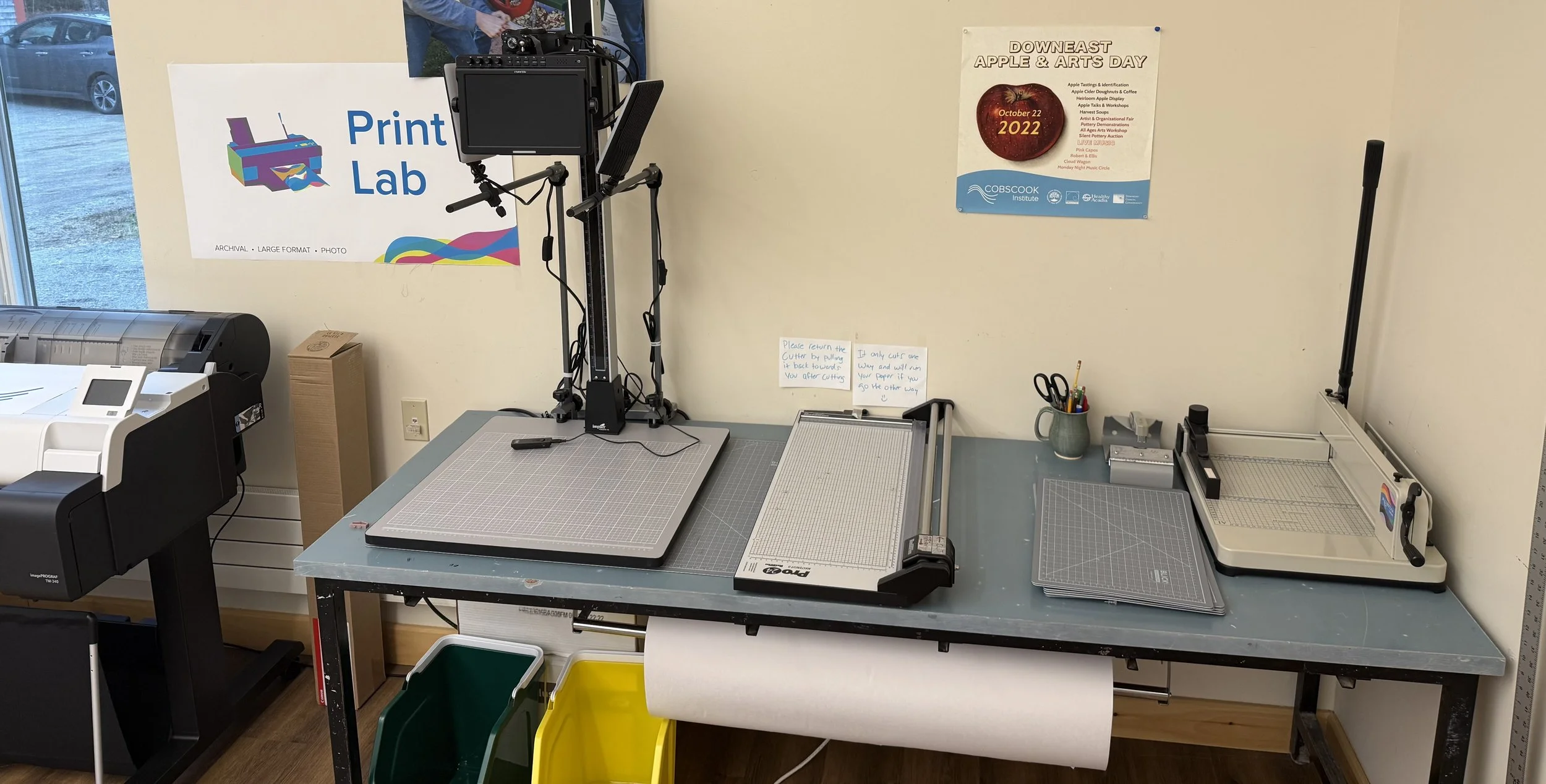 The Print Lab is available for community use, and offers archival, large-format photo printers to print photographs, artwork and posters at cost.